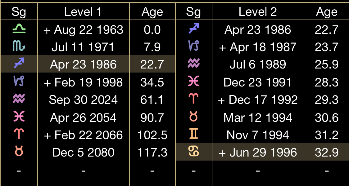 Passing the torch, Jupiter, ruler of Sagittarius handed the ZR level one reins over to Saturn, ruler of Capricorn on February 19th, 1998.